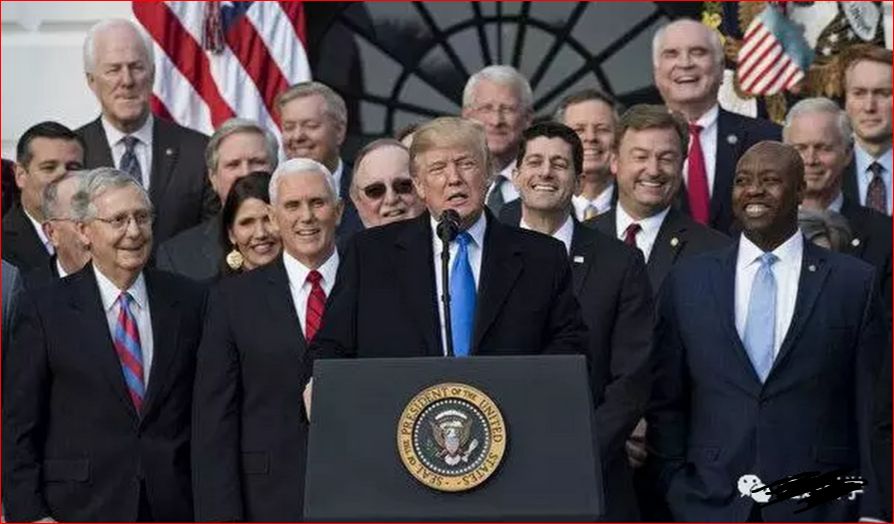 上图(来源:SAUL LOEB/AFP/Getty Images):12月20日,美国参众两院通过共和党提出的大规模税改案后,总统川普、副总统彭斯和共和党国会议员在白宫庆祝。据报道,联邦众议院通过规模1.5兆美元税改案,此法案预计将美国公司税从35%降为21%。透过对企业大幅减税,以及对个人暂时性减税,这项税改案将影响美国经济各个层面。