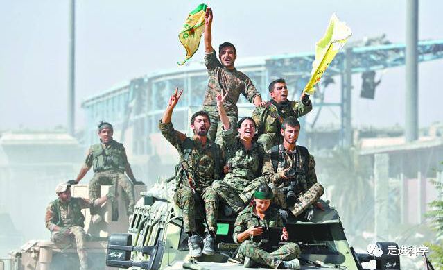 上图:美国支持的“叙利亚民主力量”的士兵庆祝光复拉卡